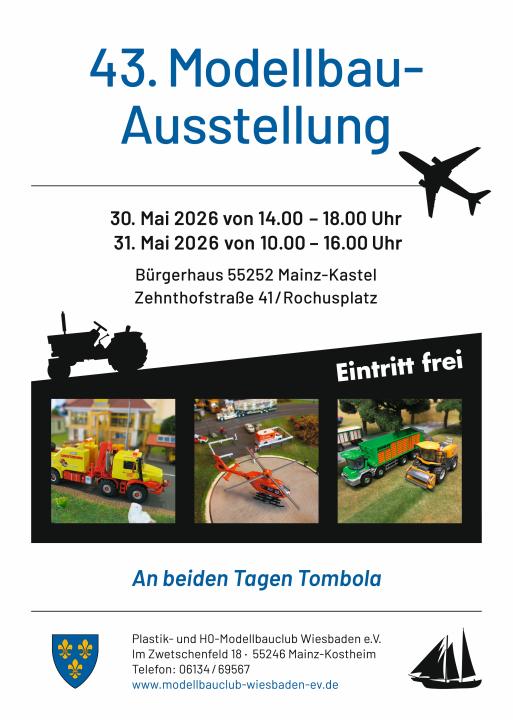 Der Plastik- und H0-Modellbauclub Wiesbaden e.V. veranstaltet im 47. Jahr seines Bestehens am 30. und 31. Mai 2026 seine 43. Modellbau-Ausstellung.
