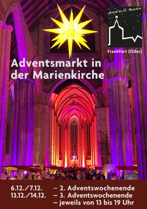 Der Weihnachtsmarkt in der Marienkirche startete 1999. Nunmehr findet er zum 25. Mal statt. Mehr als 500 verschiedenen Händler und Handwerker bereicherten in den mehr als zwei Jahrzehnten den Markt und boten mit Beständigkeit und Wandel ihre Waren feil. Auch 2025 werden wieder mehr als 50 Händler den Sakralbau „belegen“. Dazu eröffnen die Posaunenchöre aus Müllrose, Frankfurt/Lebus immer um 13 Uhr für eine Stunde den Markt mit weihnachtlichen Musikstücken.