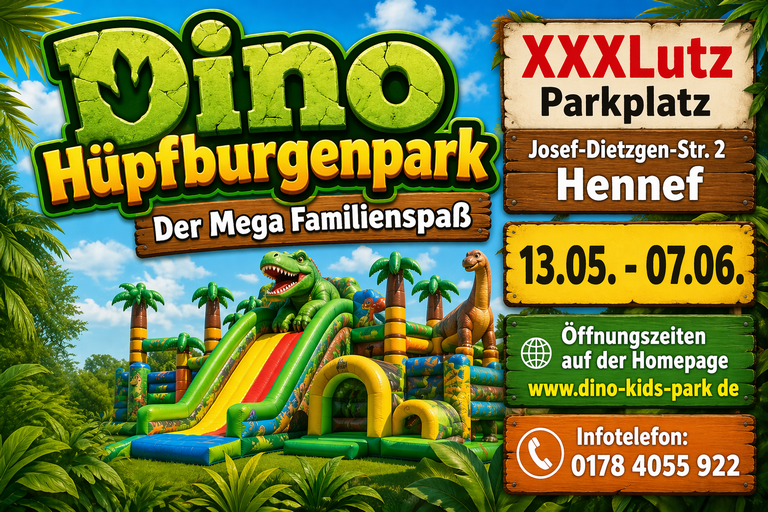 Ein besonderes Erlebnis für Groß und Klein steht bevor: Der Dino-Hüpfburgen Erlebnispark kommt in eure Stadt und verwandelt eine große Fläche in eine spannende Dino-Abenteuerwelt voller Bewegung, Spiel und Spaß.