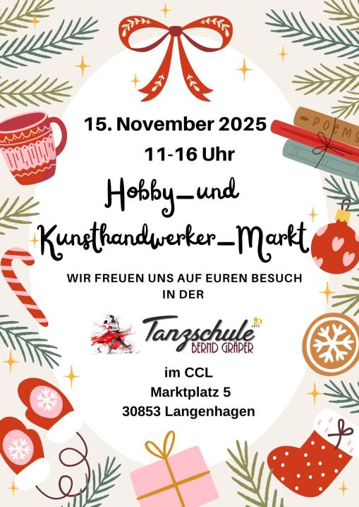 Am Samstag, 15.11.2025 lädt die ADTV Tanzschule Bernd Gräper in Langenhagen zu einem Hobby- & Kunsthandwerkerbasar ein.