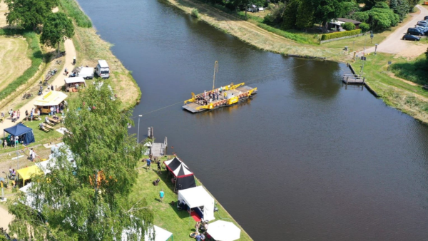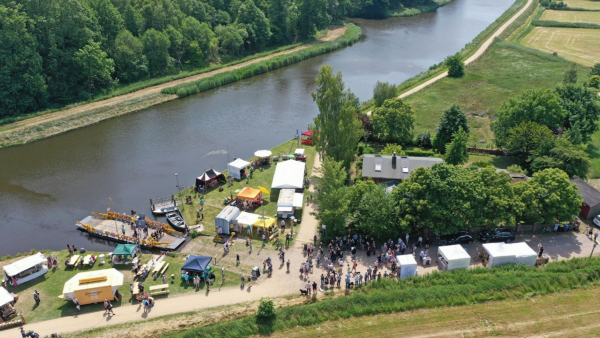 Die alte Seilzugfähre verbindet auch an diesem Wochenende beide Ufer des Kanals. Bei einer Fahrt über den Wasserweg der Alten Salzstraße können die Fahrgäste herrlich entschleunigen und ihre nächsten Standbesuche planen.