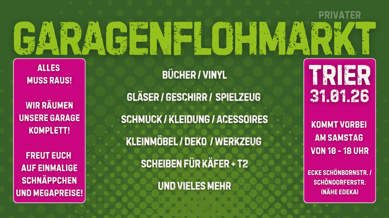 - Veranstaltungsort: Garage Ecke Schönbornstrasse/Schöndorferstrasse
